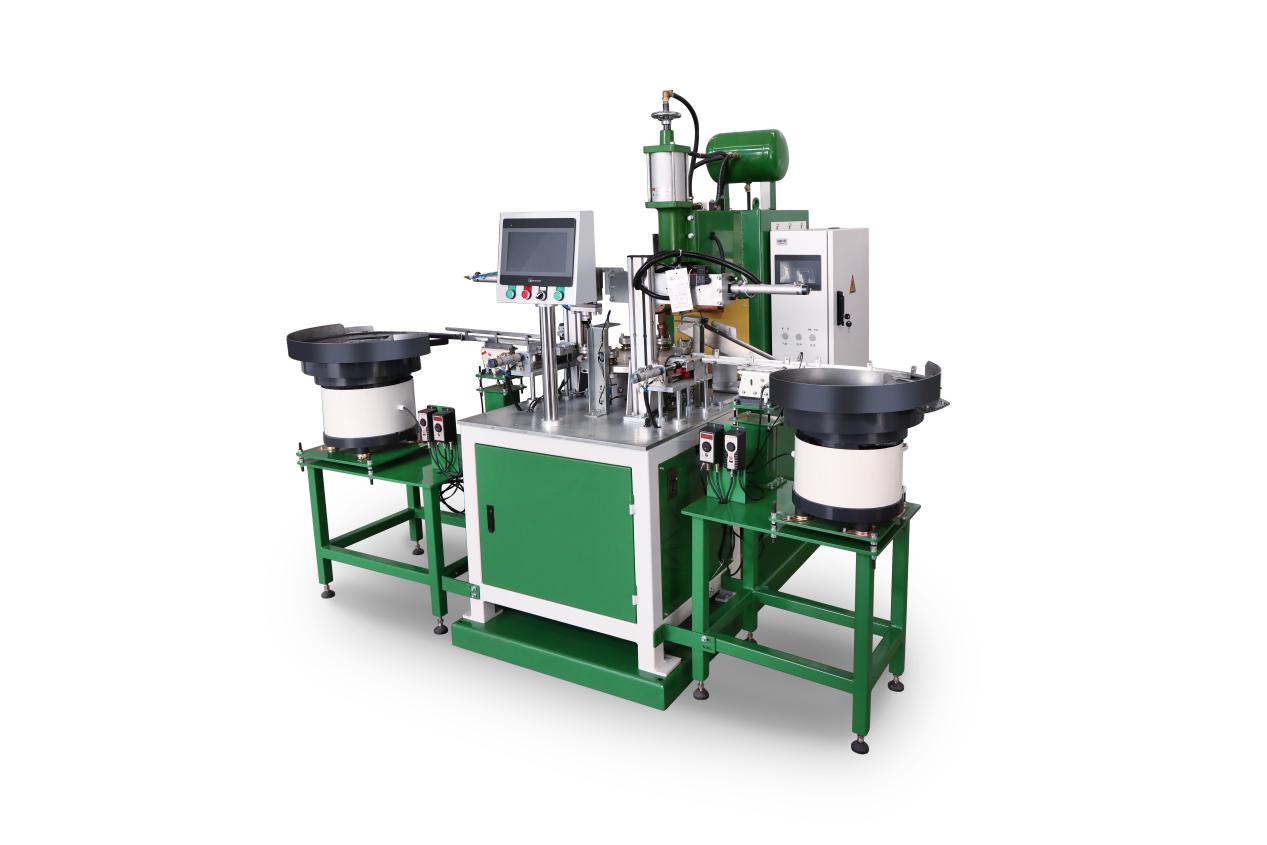 設(shè)備全程采用振動盤及多工位轉(zhuǎn)盤自動送料、排序、組合進(jìn)行焊接及自動卸料,實現(xiàn)全自動化焊接方式。